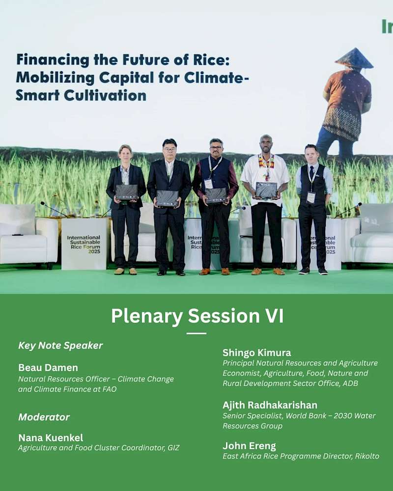 The speakers joined interactive panel discussions and breakout sessions addressing crucial issues such as the opportunities and challenges of sustainable rice production in Asia and beyond; low-carbon farming practices and market access; the role of digital tools, finance, and partnerships in scaling impact; and policy pathways to align food security, farmer livelihoods, and the climate agenda. Furthermore, the forum served as a platform for stakeholders to discuss green finance, the integration of national food policies, and the implementation of sustainability standards that can meet global market demands.