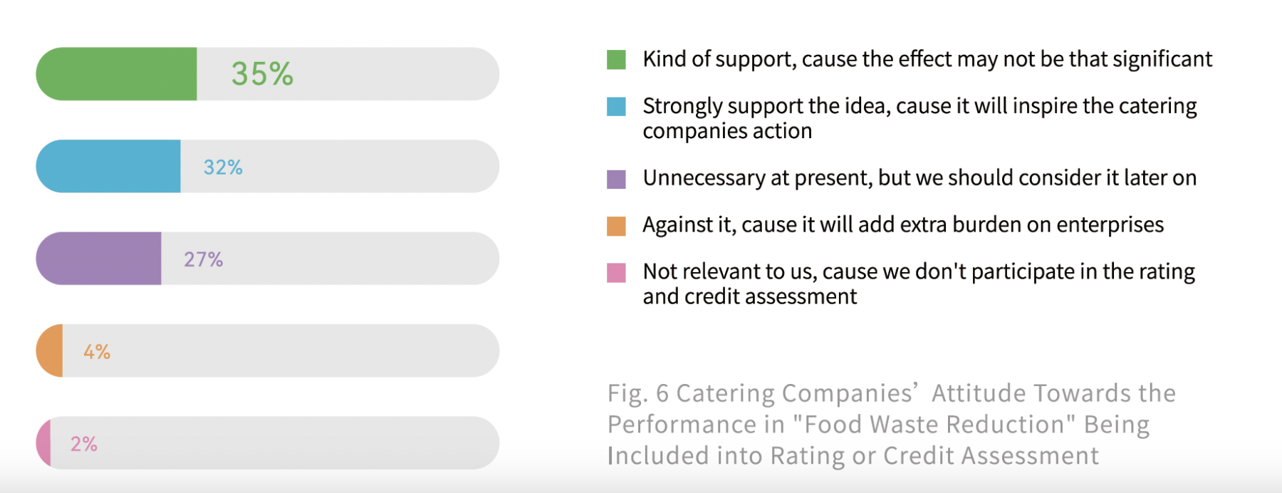 An online study involving 556 catering enterprises reveals that the publicity of anti-food waste policies has been strengthened, and training on reducing food waste has generated good effects. However, the policy publicity and implementation led by governmental authorities for multiple main bodies through multiple media channels need to be carried out in an all-round manner, especially the publicity and training for small and medium-sized enterprises need to be increased.